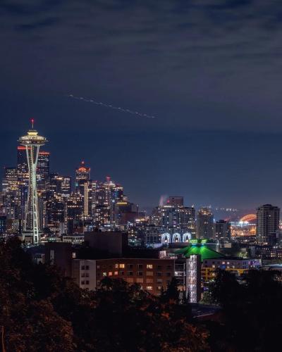 晚上去Kerry Park,可以拍到西雅圖夜景的最佳角度。這裡是攝影愛好者的必打卡點,太空針塔與城市天際線在夜色中格外動人。