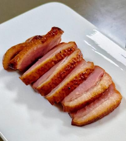 7. 檢查並切片:烤制完成後,將烤盤取出,靜置5分鐘讓鴨胸肉稍微冷卻,便於切片。切片時注意沿著肉的紋理切,保持肉質的嫩滑。最後,可以將切好的鴨胸肉擺盤,淋上剩餘的蜜汁醬料。
