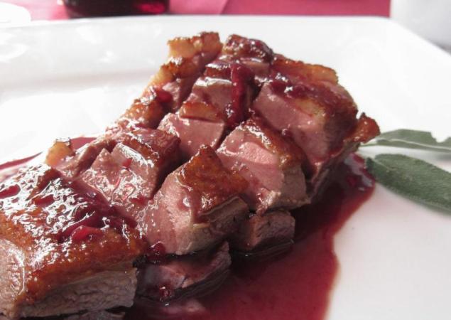 8. 裝盤:將燉好的鴨胸肉取出,切成薄片,搭配燉菜一起裝盤,淋上紅酒燉汁,最後撒上一些新鮮香草裝飾,完成。