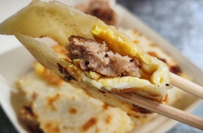 • 招牌手工粉漿蛋餅:餅皮是自製粉漿煎的,厚實軟Q帶點微酥,跟一般連鎖早餐店的薄脆蛋餅完全不同口感!加起司或玉米更讚。(冷掉也好吃!)